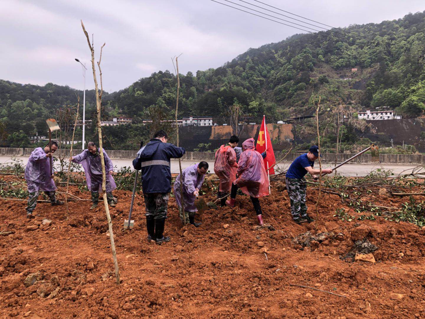 黨員們發(fā)揮先鋒帶頭作用,保證自身勞動(dòng)進(jìn)度,同時(shí)協(xié)調(diào)人員,維持現(xiàn)場秩序及效率。植樹現(xiàn)場是一派緊張有序的勞動(dòng)景象,參加植樹的干部職工個(gè)個(gè)熱情洋溢、干勁十足,有的運(yùn)樹苗,有的舞鋤頭,你追我趕,比干勁,比進(jìn)度,各個(gè)環(huán)節(jié)銜接有序,樣樣做得認(rèn)真到位,個(gè)個(gè)忙得滿頭大汗。到處都是忙碌的身影。